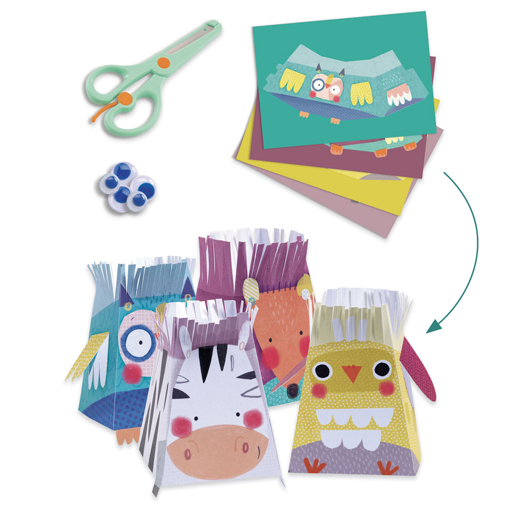 This all-in-one Djeco Creative Set offers 6 fun art activities themed around animals and their homes: collage, coloring, mosaics, cutting, assembling, and decals.