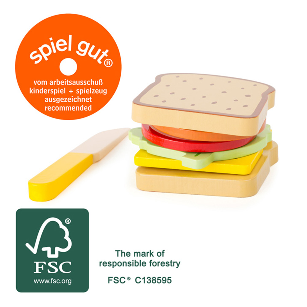 The Velcro fasteners hold the parts together and can be separated with the wooden knife. This product is made of FSC® 100%-certified wood.