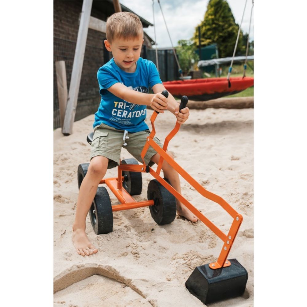 The metal digger with big plastic wheels is the best tool for little builders! An ideal toy in the sandbox, rotatable up to 360° with fantastic bucket seat. Very sturdy but light!