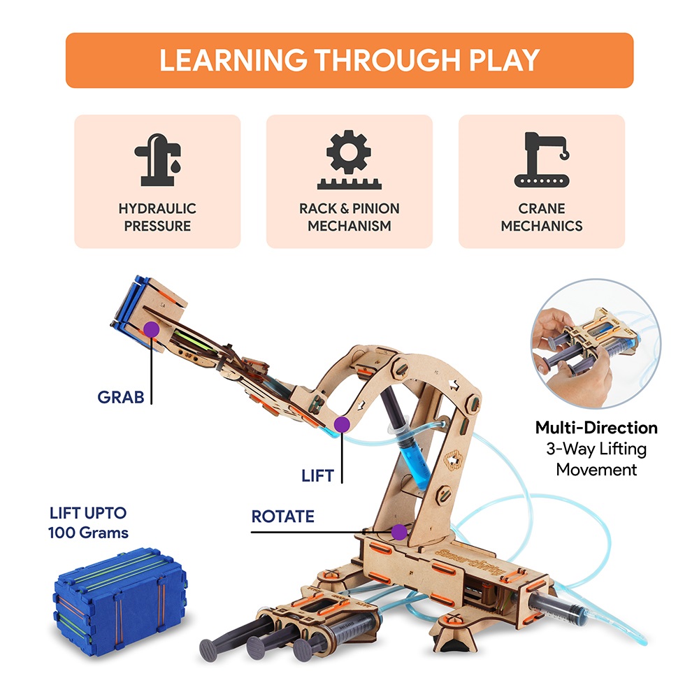Smartivity Pump It Move It Hydraulic Crane allows kids to build their own fully functional crane.