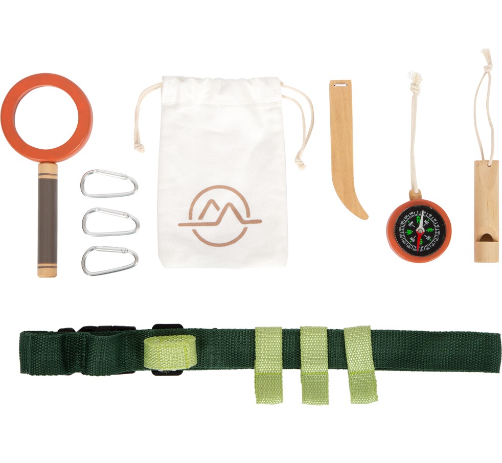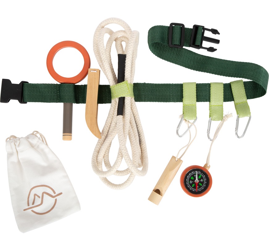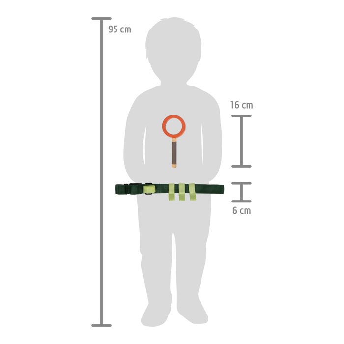 This tool belt is ideal for nature hikes, adventures, and expeditions, because with child-friendly outdoor and explorer’s toys, the world just outside the front door becomes an exciting place full of discovery! With the help of the research equipment, even the youngest children can go on fun and exciting explorations and observations in the garden, forest, or meadow. With the high amount of visible wood material, rounded edges, and design with earth tones and natural green tones, the explorer toys of the “Discover” product line are real eye-catchers on any expedition!