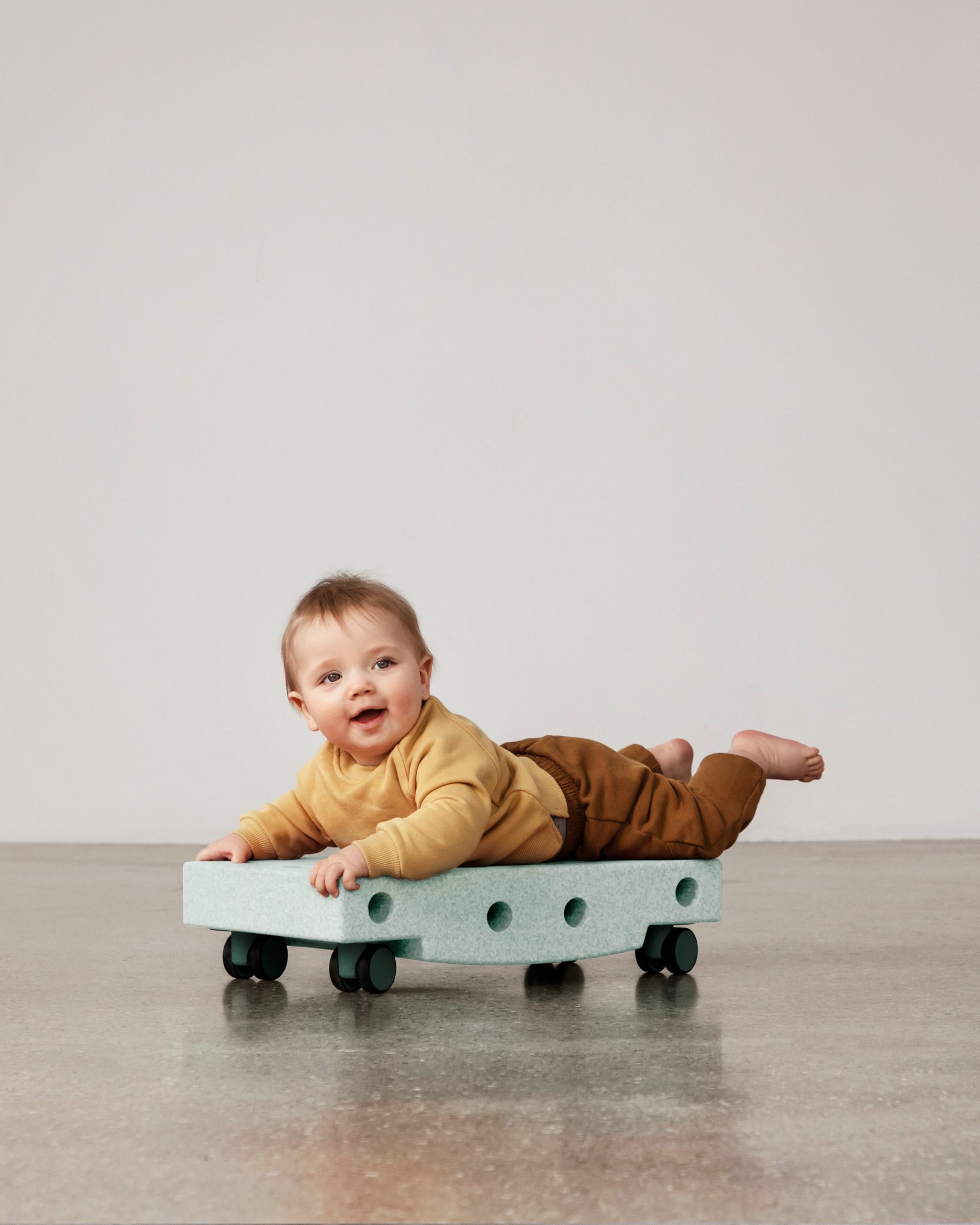 This MODU Scooter Board is a simple yet versatile toy for practicing basic motor skills with your baby or toddler. Use it for tummy time and move the board around, or remove the wheels and rock back and forth. Even simple movements and sensory stimulation can bring a smile to a baby’s face — and the fun has just begun! As your kids grow, let them enjoy the freedom of spinning around on their own, using their entire body. Remove the wheels and you’ve got yourself a balance board or combine with the rest of the MODU system to build more advanced creations.