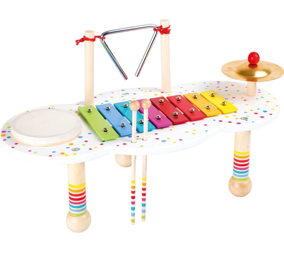 This colourful music table encourages children to play music. Children can learn to play the musical scale and develop their sense of rhythm.