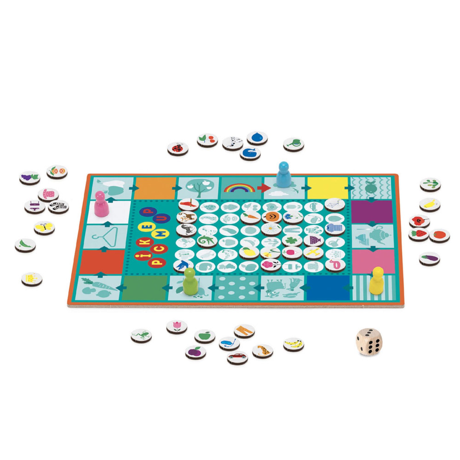 This sorting game will help children develop their language, logic and observation skills. Designed above all for playing, Pick Me Up also offers the opportunity to reinforce learning and grasping the notions of sorting and categorising. Contents: 1 game board, 4 “sorting reminder” cards, 48 image tokens, 4 game pieces and 1 wooden die, game rules in 10 languages. This sorting and categorising game is for 2 to 4 players lasting about 15 minutes. A game from the “Cool School” collection: fun games for learning! Recommended Age: 4 years+ Dimensions: 21 x 21 x 5 cm.