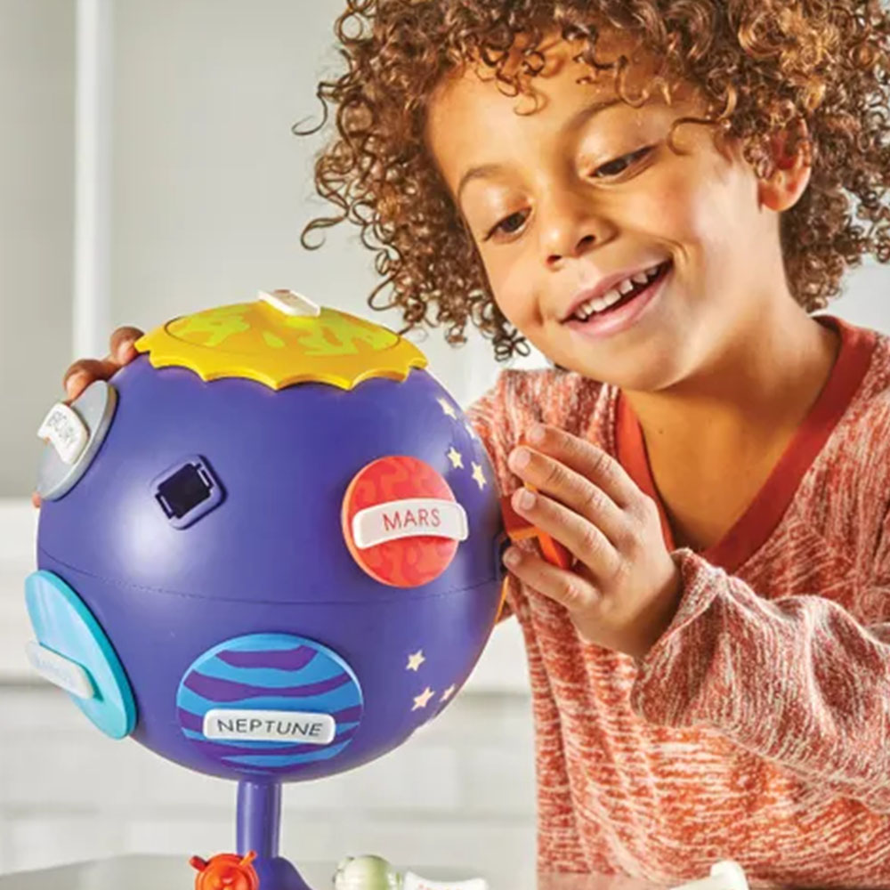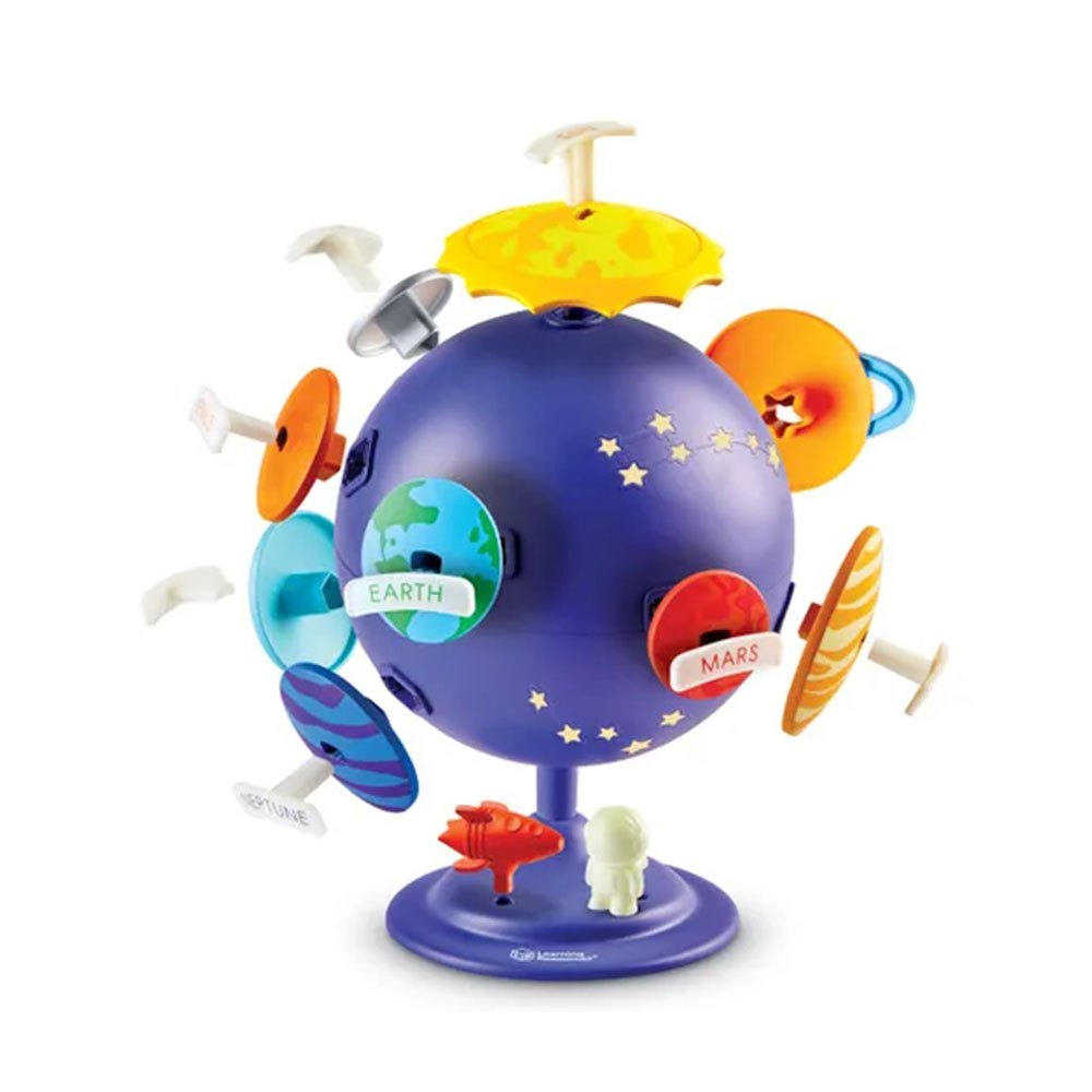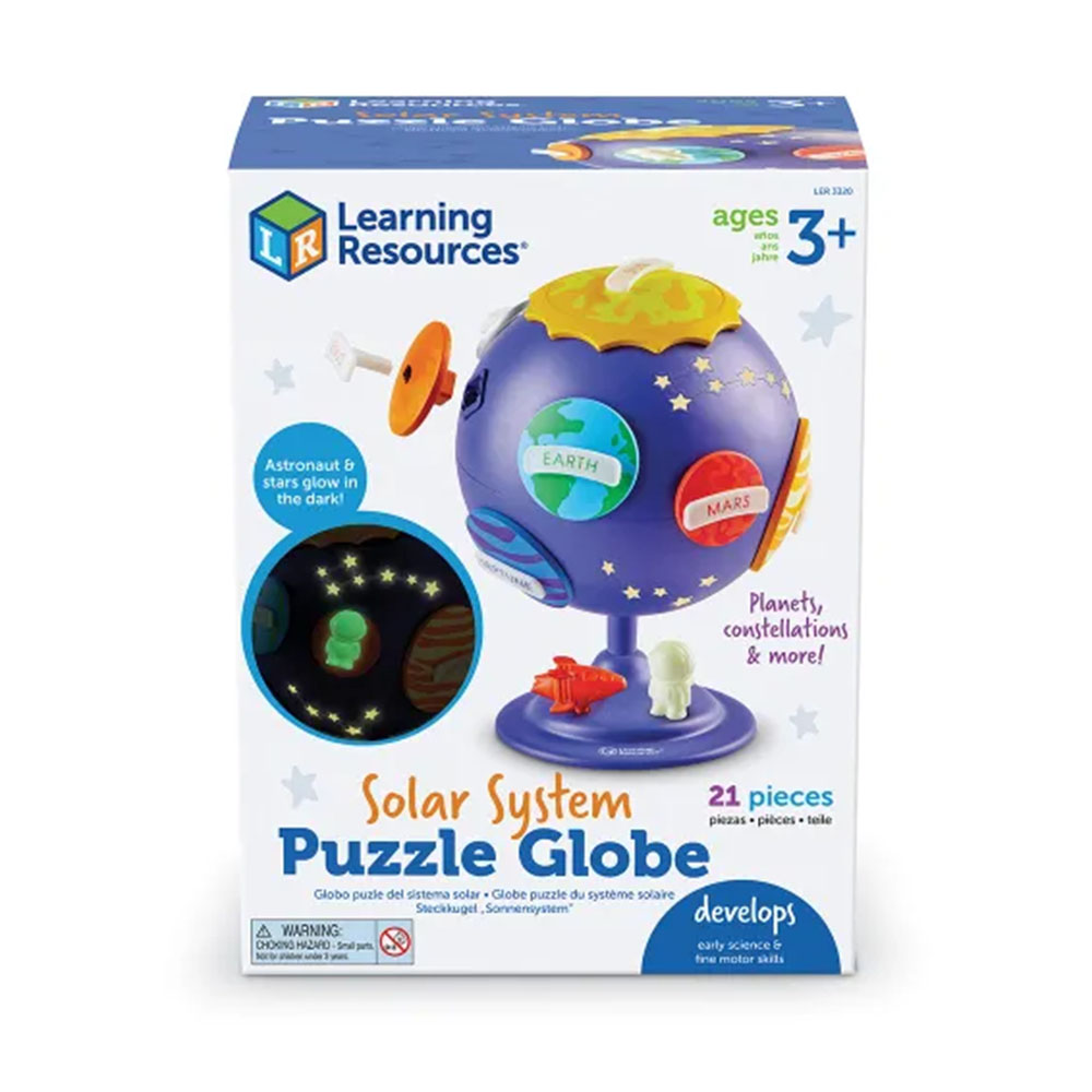 Take your child on a space-themed learning adventure with this 3D solar system puzzle with astronaut figure and mini spaceship. As children fit the planet puzzle pieces into the round globe, they build fine motor skills while learning about our neighbouring planets and the sun. What’s more, this Solar System Puzzle Globe has a cool hidden surprise. Turn off the lights and see the stars and astronaut glow in the dark!