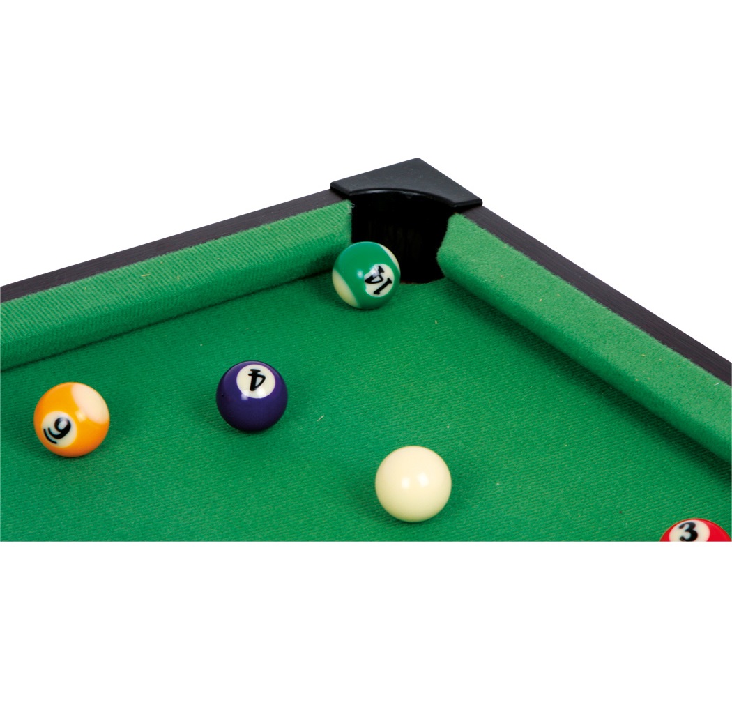 little pool table is an amusing activity and a playful training for the fine motor skills and the hand-eye coordination! You will have fantastic games on the table with 2 cues (approx. 66 cm), balls, triangle and chalk! Super suitable for travelling, the little break in the office, quick games for in between or every party tournament!